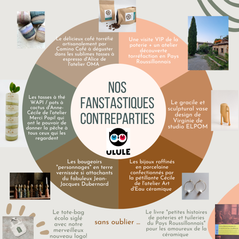 Notre réseau de céramistes (Jean-Jacques Dubernard, Atelier OMA, Merci Papi, studio ELPOM, Art d’Eau…) et de soutien vous a préparé de magnifiques créations que vous pourrez acquérir en ligne sur notre page dédiée. Attention certaines pièces sont en quantités limitées ! Les fonds collectés iront à notre association pour financer le projet de ré-ouverture de la poterie des Chals.